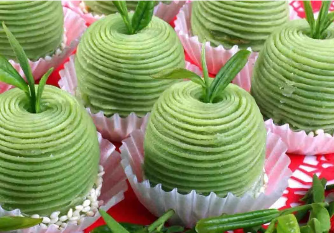 龍井茶酥也叫龍井茶糕,是杭州的一種甜點,龍井茶酥的酥里除了菠菜汁,還額外加入龍井茶汁,讓茶香味更濃,看起來顏色也是非常的清新的,吃起來口感特別的獨特,是一款老少皆宜的食品。